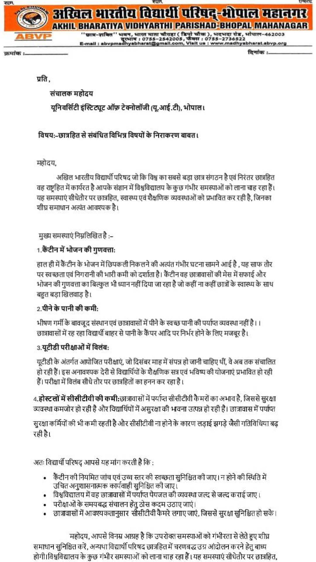 रविवार को छुट्टी होने के कारण यह मामला उठ नहीं सका। सोमवार को इसके विरोध में आपत्ति जताई गई है। साथ ही ज्ञापन भी सौंपा गया है। एबीवीपी के सदस्य लोकेश तिवारी ने बताया कि कैंटीन में करीब 500 स्टूडेंट रोजाना खाना खाने पहुंचते हैं। एग्जाम सेंटर के सामने मौजूद यह कैंटीन परिसर की सबसे बड़ी और मुख्य कैंटीन है।